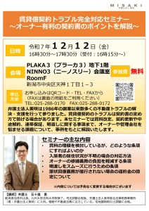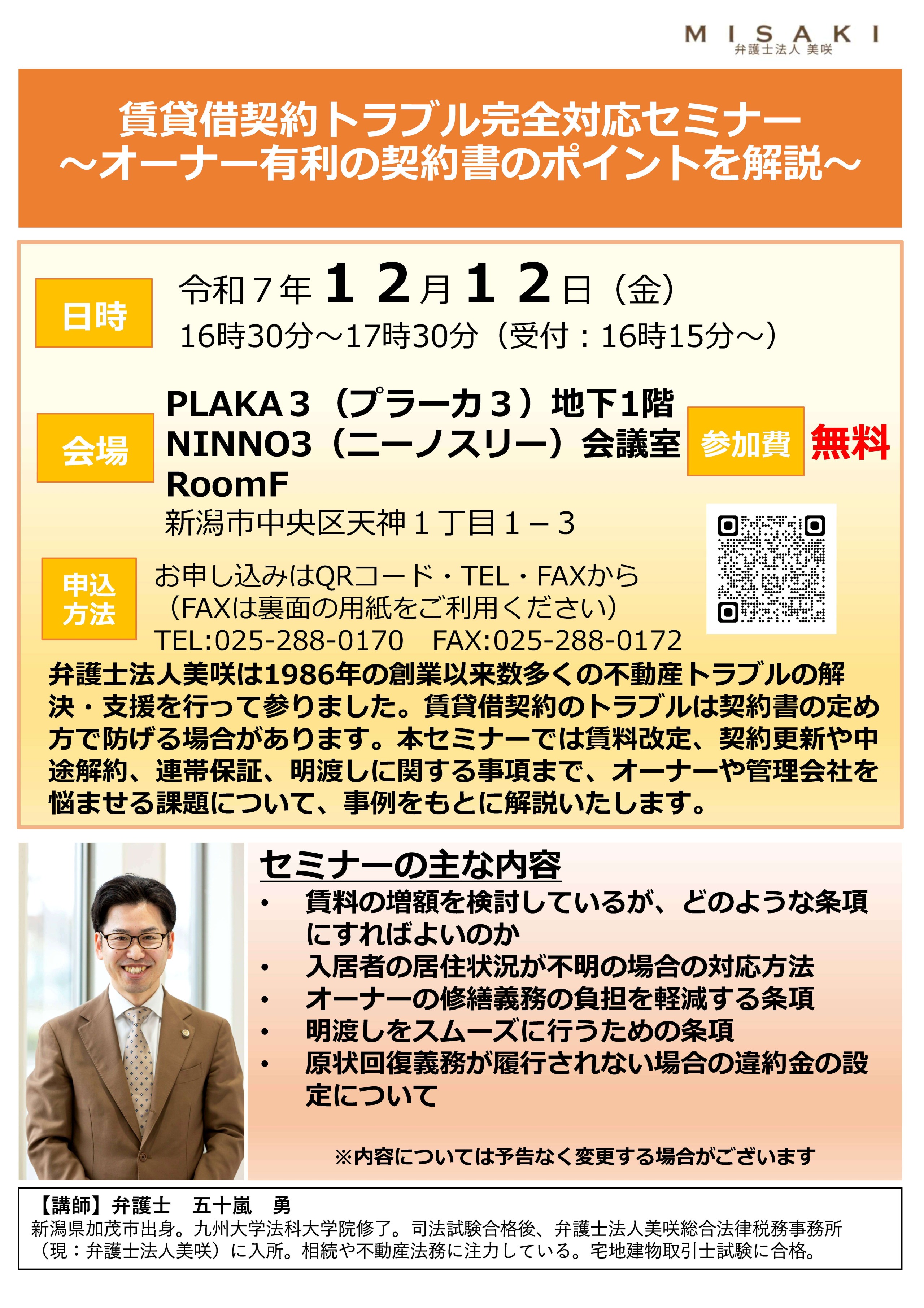 【不動産業者向け】賃貸借契約トラブル完全対応セミナーを実施いたします。