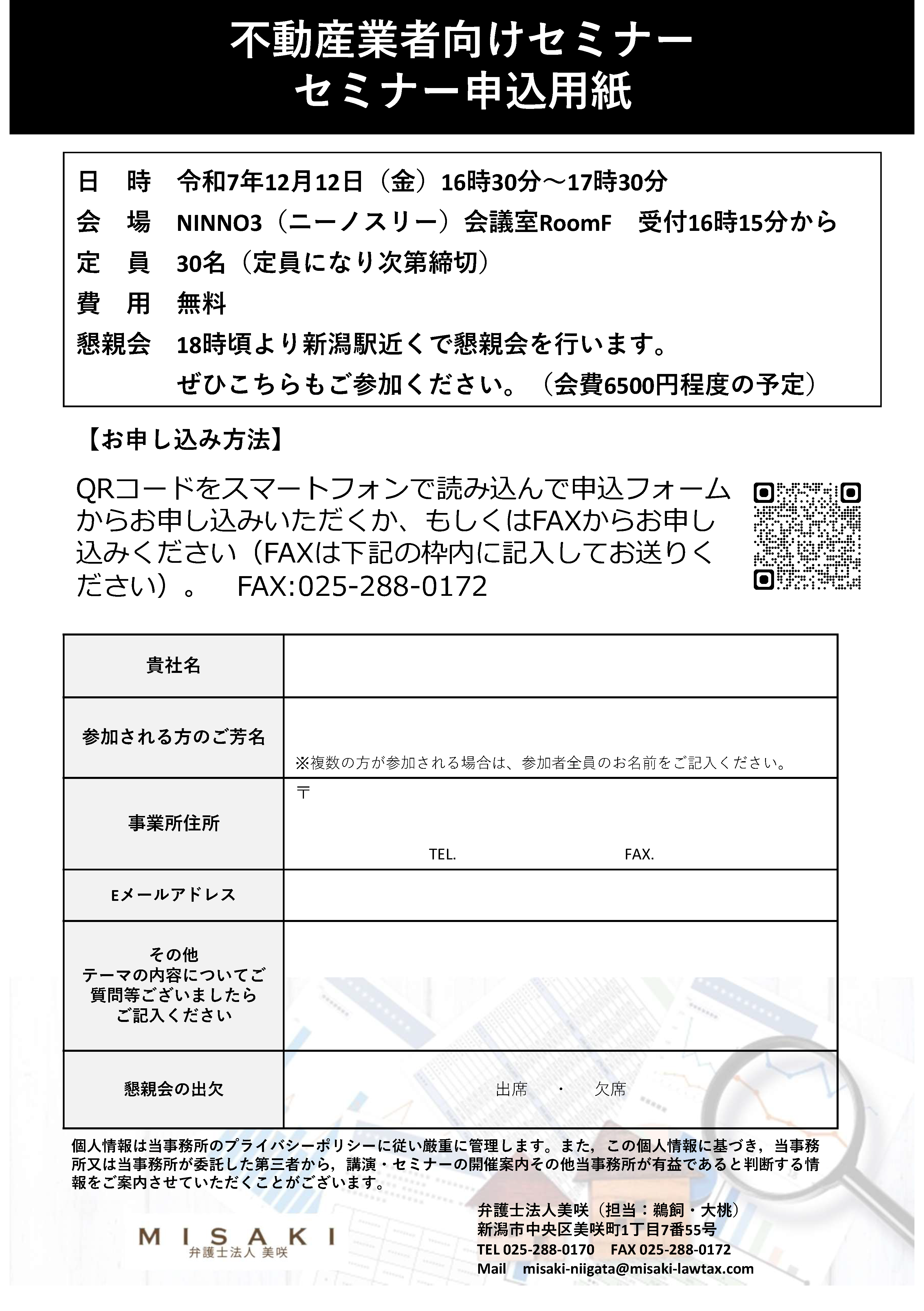 既に当事務所のセミナーにご参加されたことのある方も、初めてご参加される方も、いずれも参加費は無料ですので、ぜひお気軽にご参加ください。