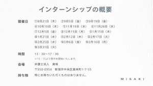 弁護士法人美咲では、大学3年生から大学院2年生までの学生を対象に、インターンシップを開催いたします。